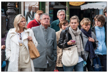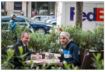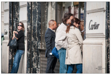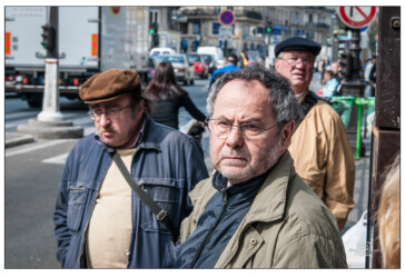 Jede Fotografie der Serie von 2012 ist wie der Ausschnitt aus einem großen Schauspiel. Paris ist Bühne, seine Straßen und Cafés sind Kulisse. Die Menschen sind Darsteller und einjeder spielt ausdrucksstark seine Rolle.
